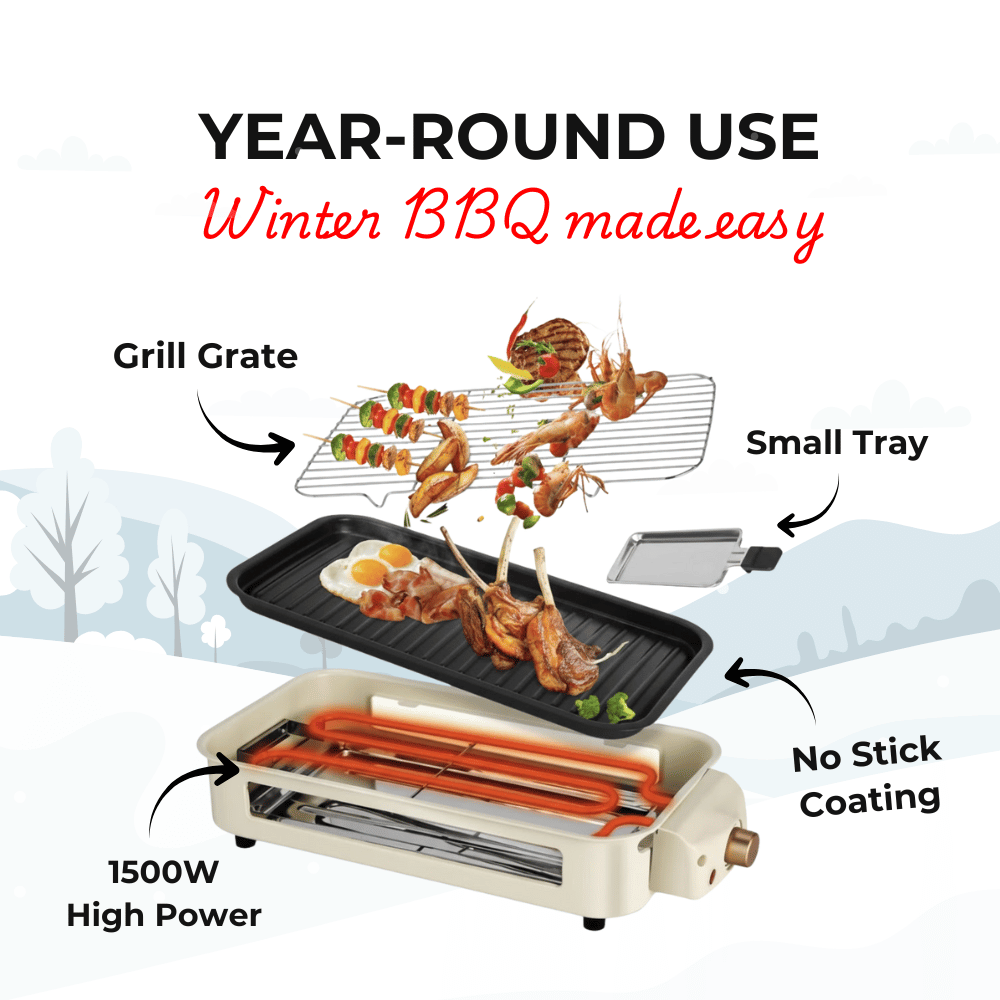 From weeknight skewers to Saturday steaks, this indoor grill turns your kitchen into a cozy BBQ corner—no smoke clouds, no charcoal fuss.